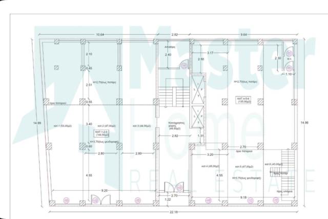 329,50 τ.μ., με μεγάλη πρόσοψη 22 μέτρων, Όροφοι 1-3: 320,50 τ.μ., ο