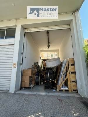 Δεξιά του κτιρίου υπάρχει κλειστός χώρος στάθμευσης ή αποθήκευσης υλικών που επικοινωνεί με το υπόγειο με μεταλλική πόρτα και γερανογέφυρα για μεταφορά υλικών προς το υπόγειο